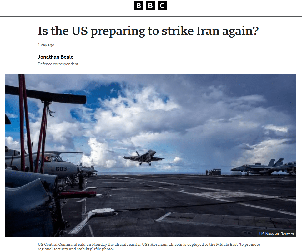 United States (U.S.) President Donald Trump has announced that an armada led by the aircraft carrier Abraham Lincoln is moving toward Iran. The U.S. Air Force has reported that its exercises across the Middle East indicates its readiness and escalation dominance. Tehran can retaliate with missile strikes – alone or through proxies – against U.S. bases in the Middle East. The situation is unstable and thus vulnerable to accidents and miscalculations.