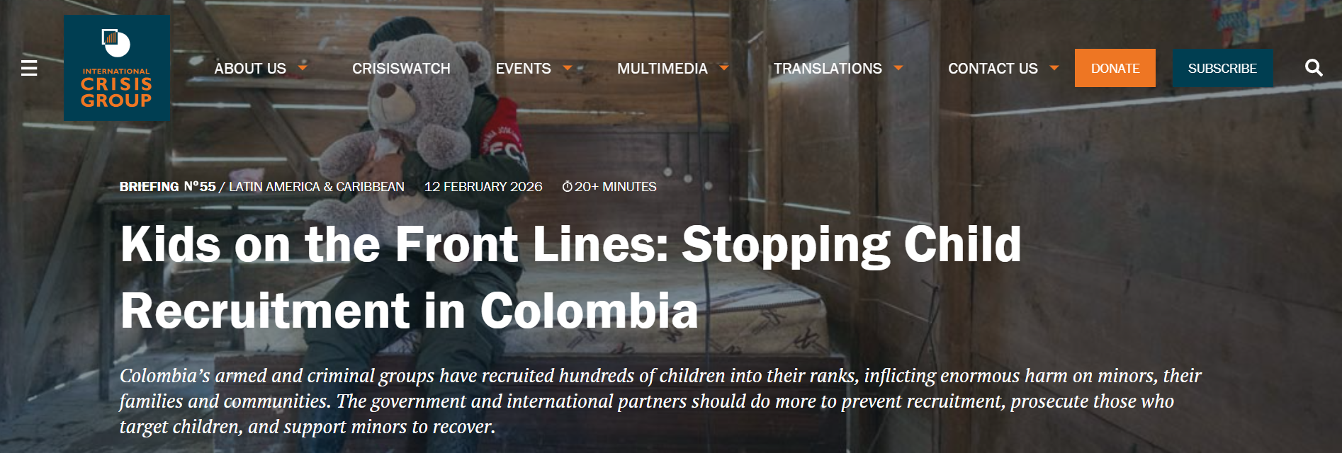 February 12 has been set by the UN General Assembly as the International Day Against the Use of Child Soldiers. Thus, the Association of World Citizens along with the International Crisis Group with its headquarters in Belgium focused on the use of youth by militias, often involved in the drug trade, in Colombia where youth are forced into militias. There had been in 2016 a ceasefire agreement between the government of Colombia and the Revolutionary Armed Forces of Colombia (FARC), the largest of the armed groups active in the country. This agreement has led many of those in the FARC ranks to be integrated into civil society. However, smaller armed groups have continued to be active. They are often involved in the drug trade as a way to finance their activities.