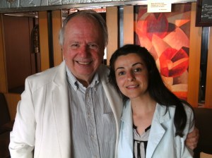 Le Professeur René Wadlow, Premier Vice-Président et Représentant en Chef auprès de l'ONU à Genève de l'AWC, et Lida Sherafatmand, Artiste AWC pour la Paix.