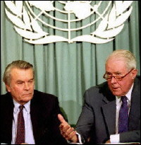 Lord David Owen, Special Representative of the European Community for Bosnia-Herzegovina, and the UN Special Envoy, former U. S. Secretary of State Cyrus Vance.