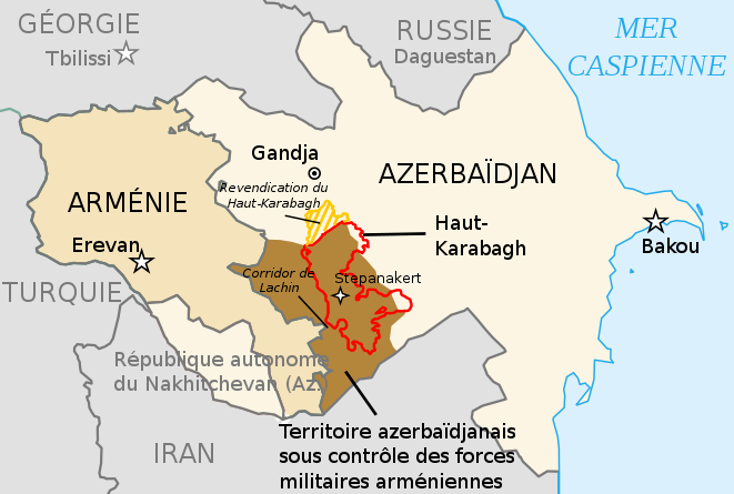 Entre 1988 et 1994, l’Arménie et son voisin de l’est, l’Azerbaïdjan, républiques soviétiques avant de devenir indépendantes à la faveur de la disparition de l’Union soviétique fin 1991, se sont affrontées militairement autour d’un territoire voisin de l’Arménie, peuplé pour l’essentiel d’Arméniens mais appartenant juridiquement à l’Azerbaïdjan – le Haut-Karabakh, ou Nagorno-Karabakh, sur une partie duquel se tient la République d’Artsakh reconnue par Erevan. Soutenu par Gorbatchev du temps de l’URSS, l’Azerbaïdjan avait refusé tout transfert de souveraineté du Haut-Karabakh à l’Arménie, position qu’il a maintenue en tant qu’État souverain et maintient encore aujourd’hui.