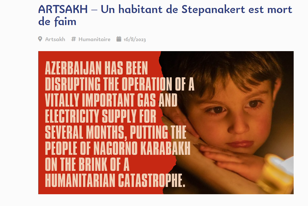 Vouloir vaincre son adversaire en affamant sa population civile, c’est déjà en soi inhumain et lâche, surtout lorsqu’une victoire militaire nette vous place en position de force pour négocier un accord de paix. De la part de l’Azerbaïdjan, pourtant, ce n’est même pas le pire. Parler de génocide, c’est parler de la volonté d’exterminer un peuple, et qui parle d’exterminer un peuple parle d’une notion simple et claire – le racisme.