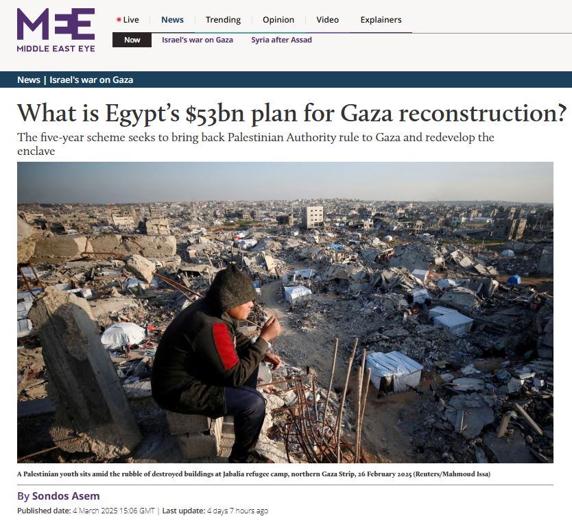 C’est aussi ce que nous disent les dirigeants arabes qui ont approuvé le plan pour Gaza. Leur but n’est pas de raviver un plan de paix au Proche-Orient, «seulement» de rebâtir Gaza en préservant la dignité humaine de la population arabe palestinienne, meilleur moyen qui soit de préserver la sécurité pour la population juive – et arabe – israélienne, loin d’une Gaza de fiction qui n’existe que dans les fantasmes des nouveaux dirigeants des Etats-Unis. Pourtant, au point où nous en sommes, est-il encore possible de dissocier la reconstruction de Gaza de la paix au Proche-Orient dans son entier ? Est-il en fait souhaitable de distinguer les deux ?