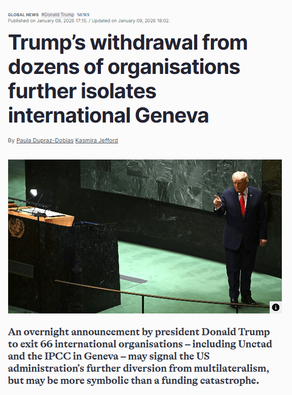The U.S. withdrawal comes at a time when the UN as a whole (the 193 member States) is in the process of evaluating UN structures and programs (UN 80). The results of this evaluation should be presented later this year.