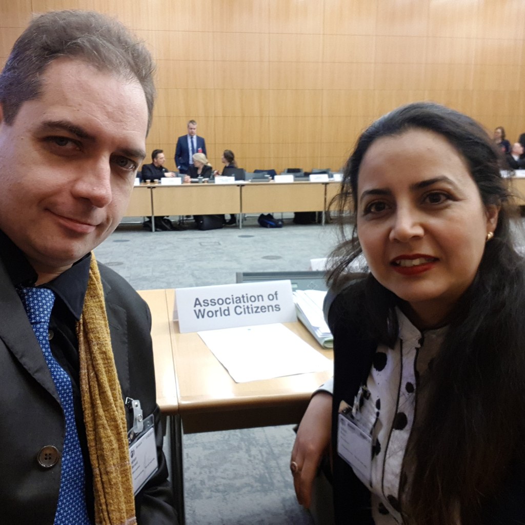 The First Officer and External Relations Officer, Bernard J. Henry, and the Legal and Mediation Officer, Attorney Noura Addad, representing the AWC at an OECD roundtable in March 2019 (C) Bernard J. Henry/AWC